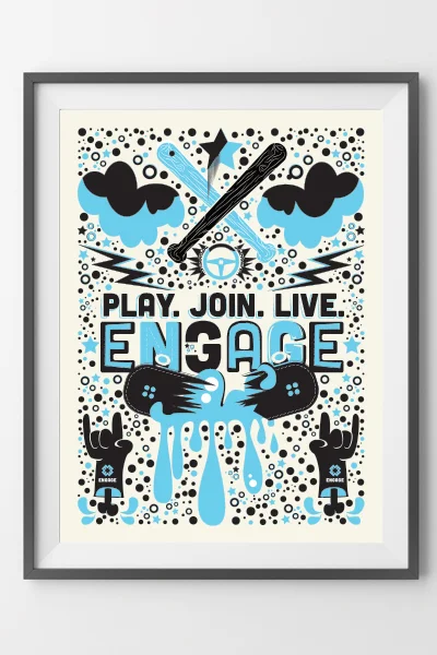 The Engage Project is a out reach youth program in Las Vegas Nevada. The Engage Project was created to help the youth of Las Vegas to over come the high statics of drug use, drop, and juvenile crime with an outlet that centers around action sports. So when working with the Engage team we wanted to create a brand that any teens would want. We created an icon that would represent what engage stop for which was to bring the community together as well as having fun in the process. That was also the general thought behind the poster design. To create something was eye catching and fun.